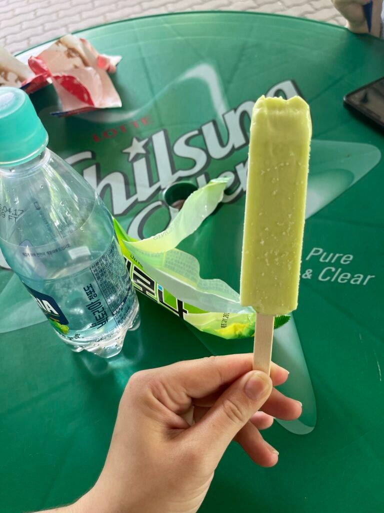 It is completely acceptable to buy food and eat it right inside the store. Popular items include kimbap, ramen cups, dumplings, sandwiches, and even full hot meals.