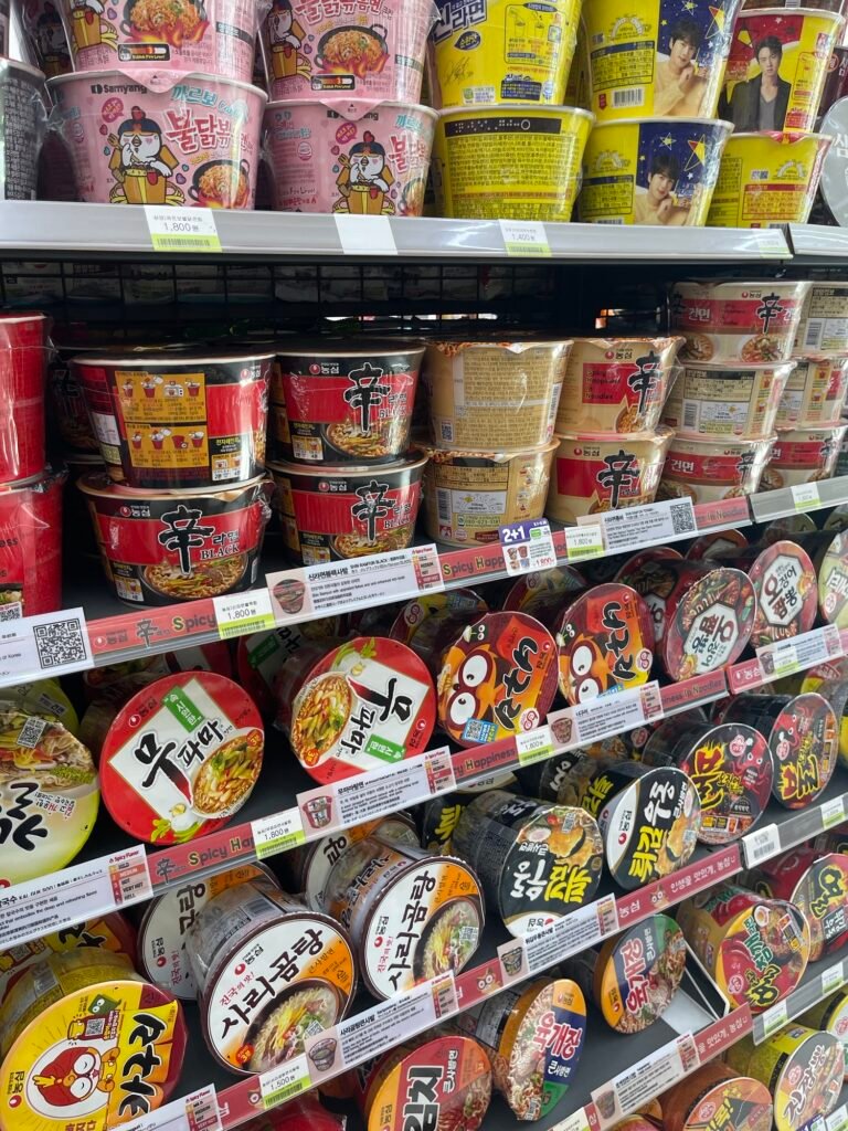 Unlike many countries where convenience stores are strictly grab-and-go, Korean convenience stores are designed for eating on the spot. Most locations have: