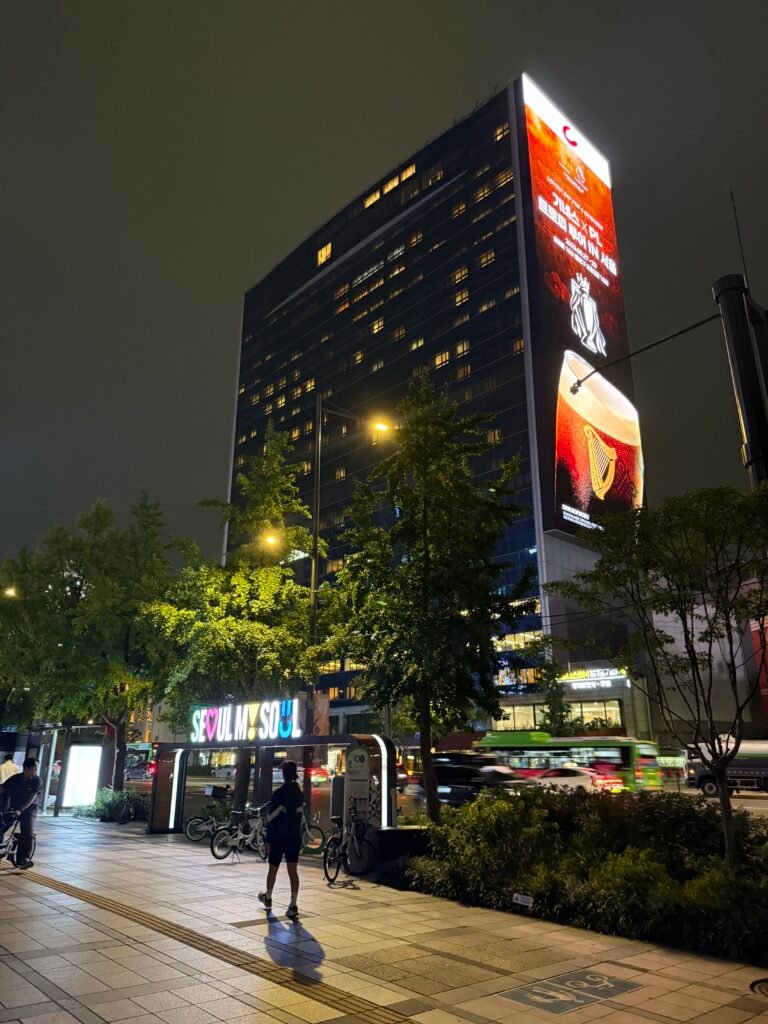 This day ended up being my favorite in Seoul. From slow mornings and wandering through massive malls to quiet moments in green spaces, upscale neighborhoods, and a sunset along the Han River, everything felt unhurried and perfectly balanced. We moved through the city using public transportation, followed our curiosity instead of a strict schedule, and experienced both the everyday side of Seoul and its iconic landmarks. It was a full day without ever feeling overwhelming, and by the time the night ended, it felt less like sightseeing and more like truly experiencing the city.