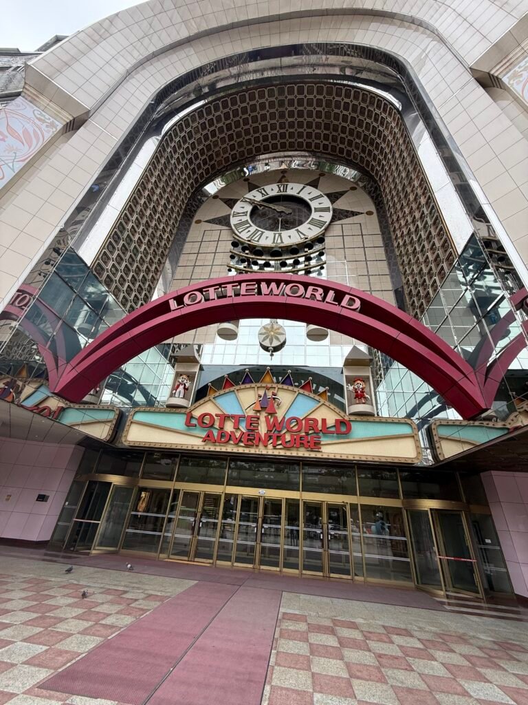 The mall is also directly connected to Lotte World Adventure, the famous indoor & outdoor theme park. We didn’t visit the park on this trip, but Katie had gone before with her family on a previous visit to Seoul and remembered it being a fun and unique experience. Even without entering, it was impressive to see how seamlessly the shopping mall and theme park are connected, making this area a popular stop for both tourists and locals.