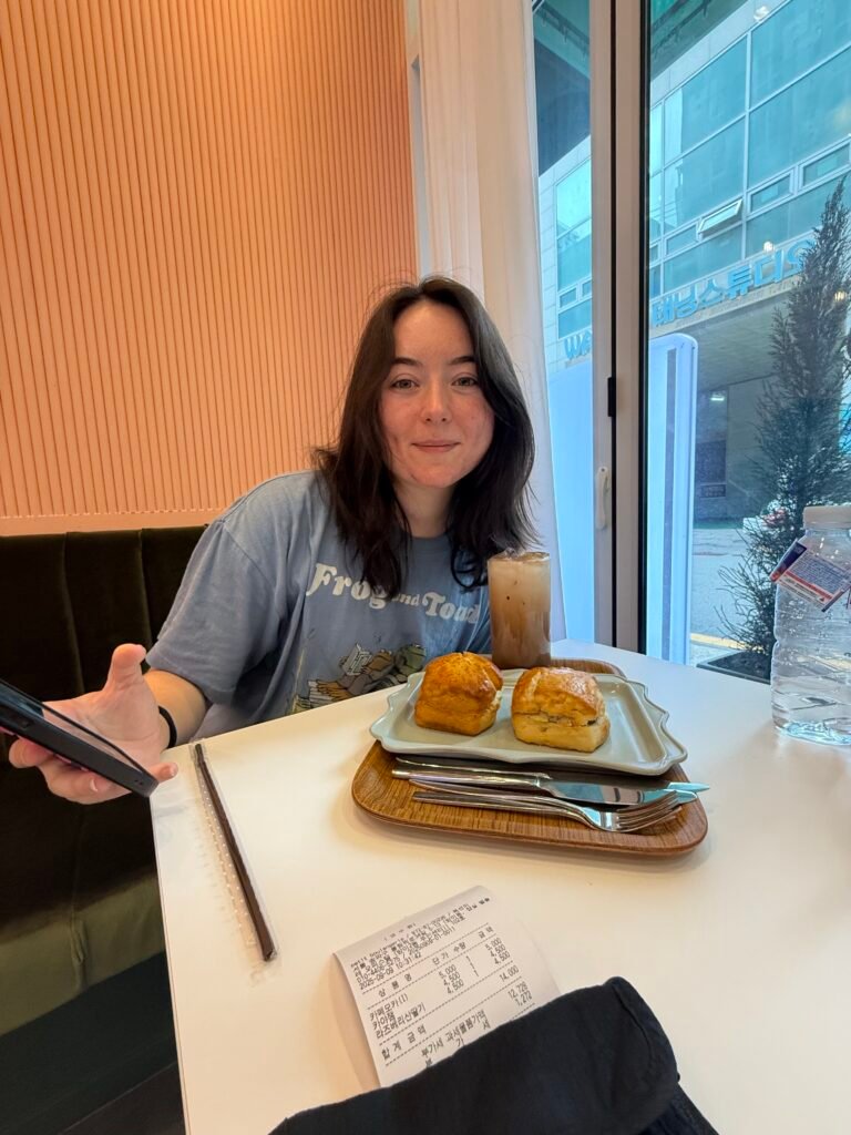 The tower’s sleek, modern design features soaring ceilings and polished finishes, but the artwork added a playful, storybook quality that felt reminiscent of Alice in Wonderland. Standing at 555 meters, it is the tallest building in South Korea and one of the tallest skyscrapers in the world. Opened in 2017, the tower was designed to reflect traditional Korean ceramics while maintaining a modern shape. The lobby features high ceilings, polished stone, and curated artwork displayed throughout the space, highlighting Seoul’s emphasis on blending modern architecture with art and culture. The café fit seamlessly into the setting, making it a great place to stop and take in the scale and design of the tower.