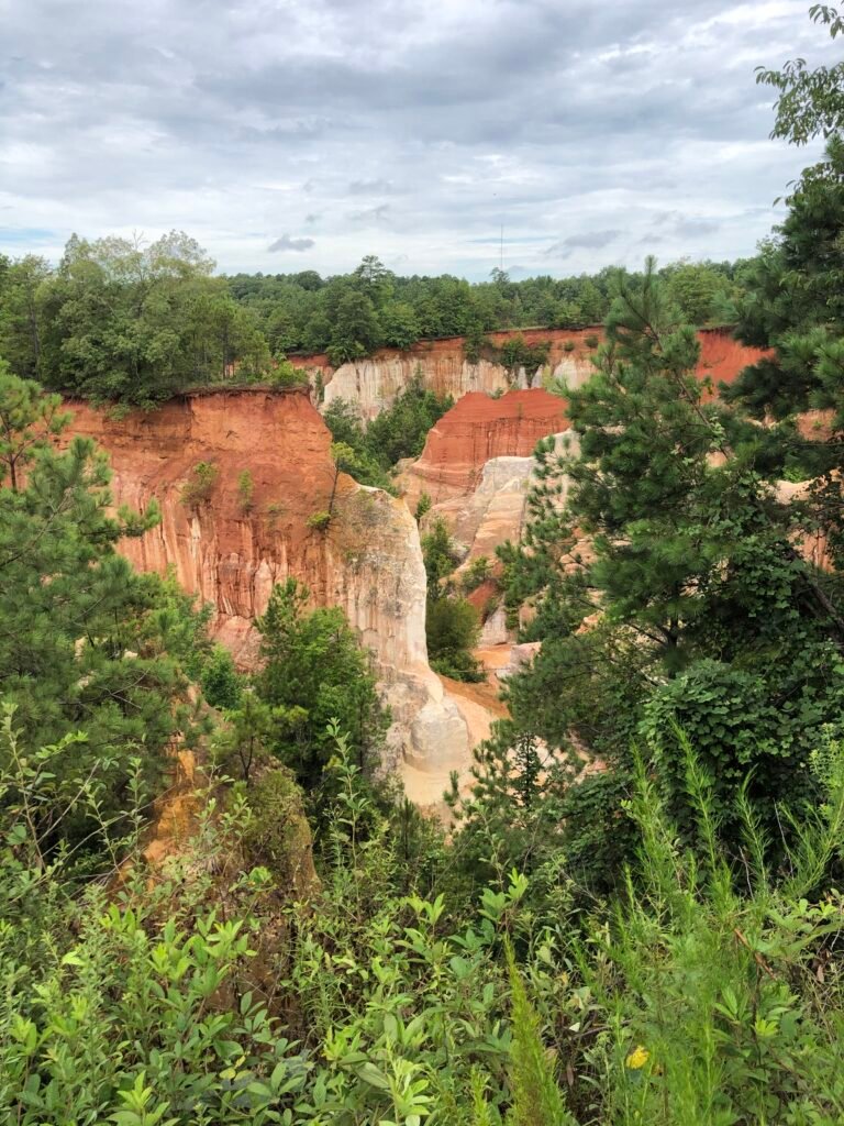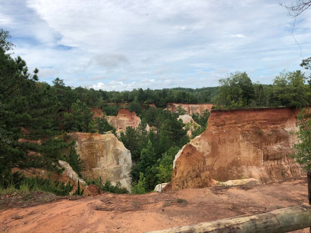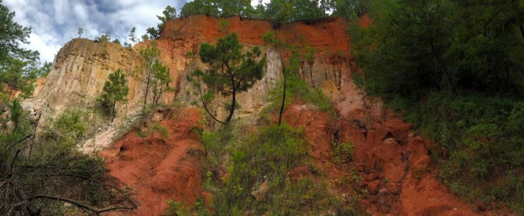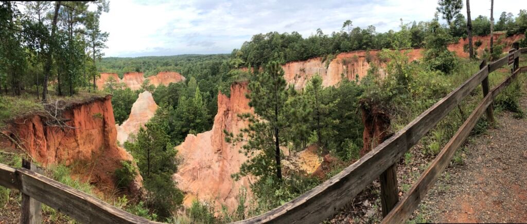 What’s wild about Providence Canyon is that it wasn’t formed naturally in the way most people expect. The canyon was actually created due to poor farming practices in the 1800s. Over time, erosion carved out massive gullies that turned into the colorful canyon walls you see today.